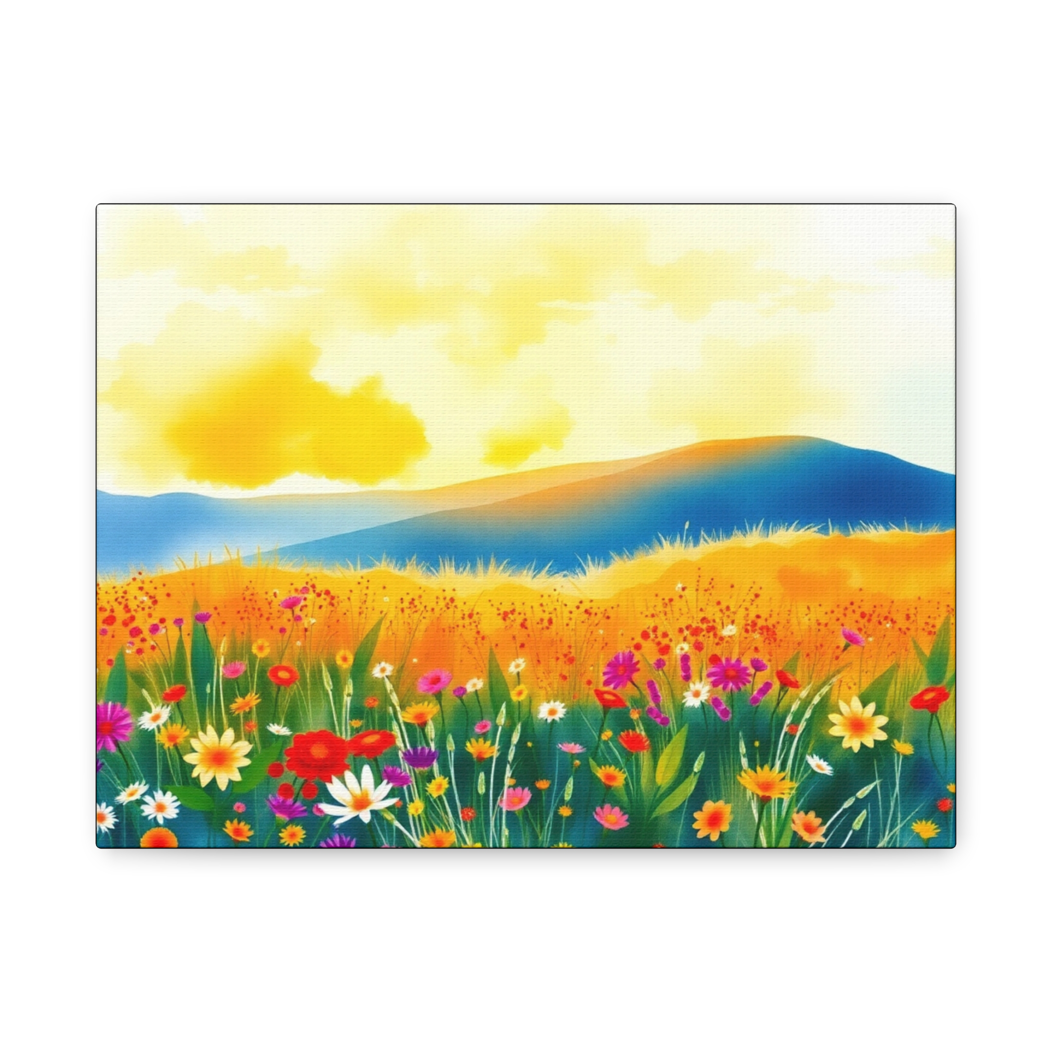 Brighten up your space with this vivid floral landscape canvas art. Featuring colorful wildflowers and serene scenery, this eco-friendly print is perfect for any room and makes a beautiful gift for nature lovers and art fans.